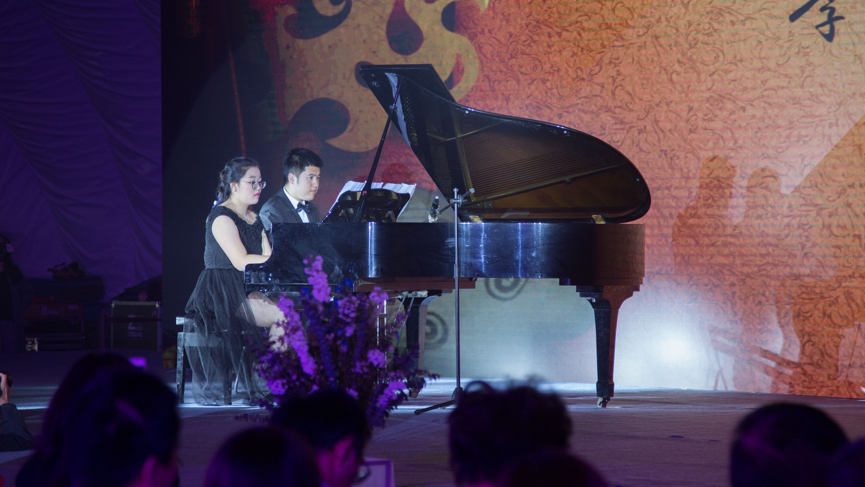 Grace Zhu from Grade 11 performed a piano duet with Baicheng, one of the autistic children artist.